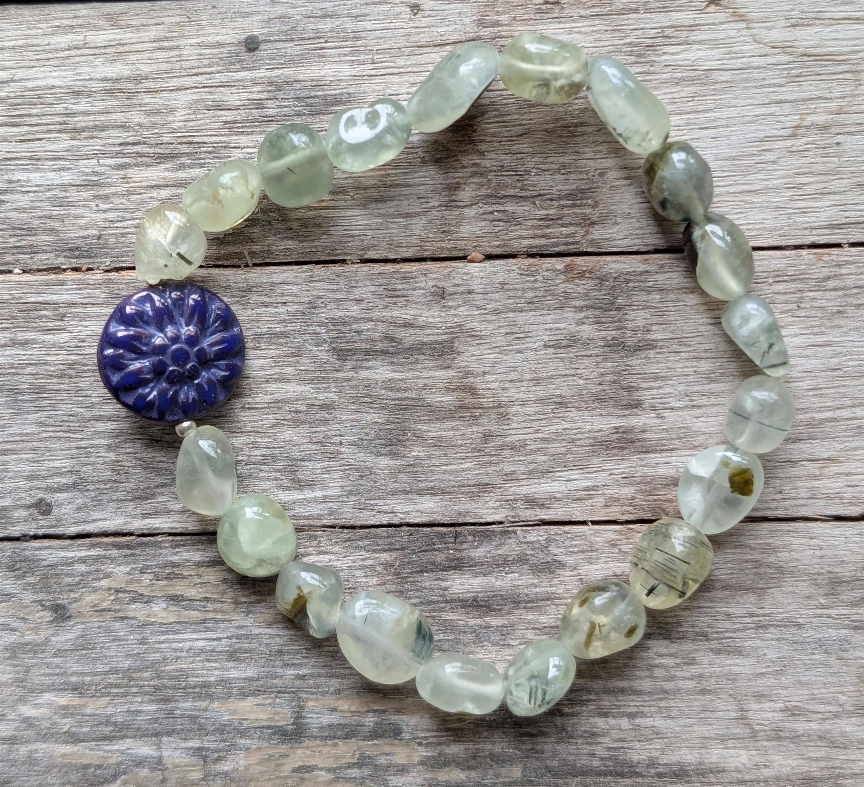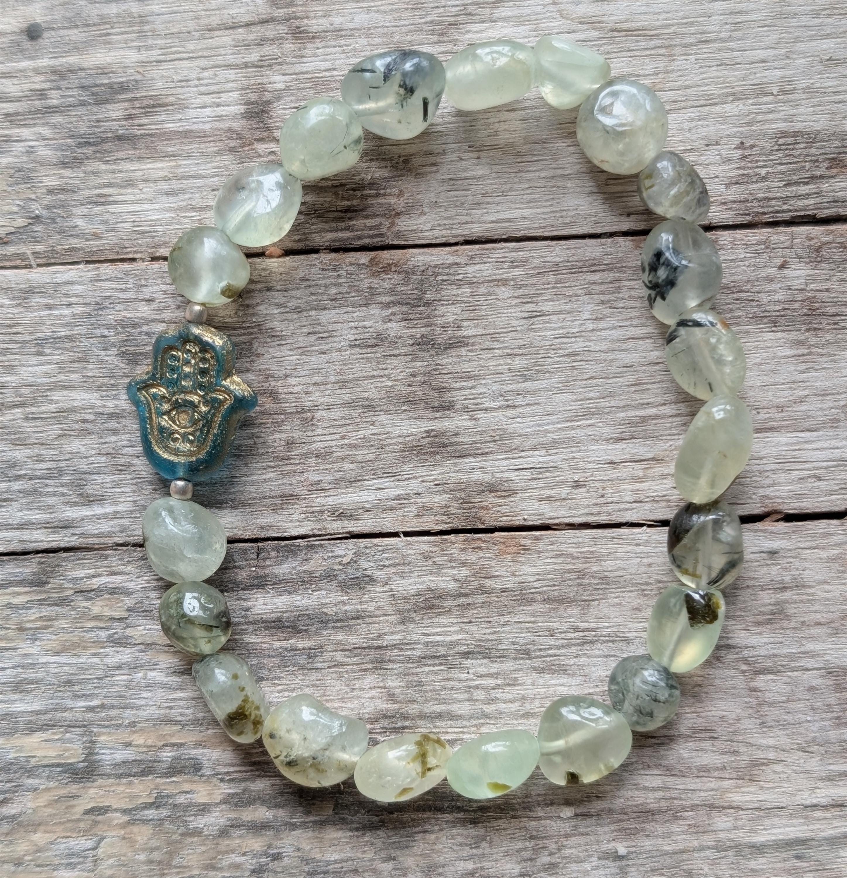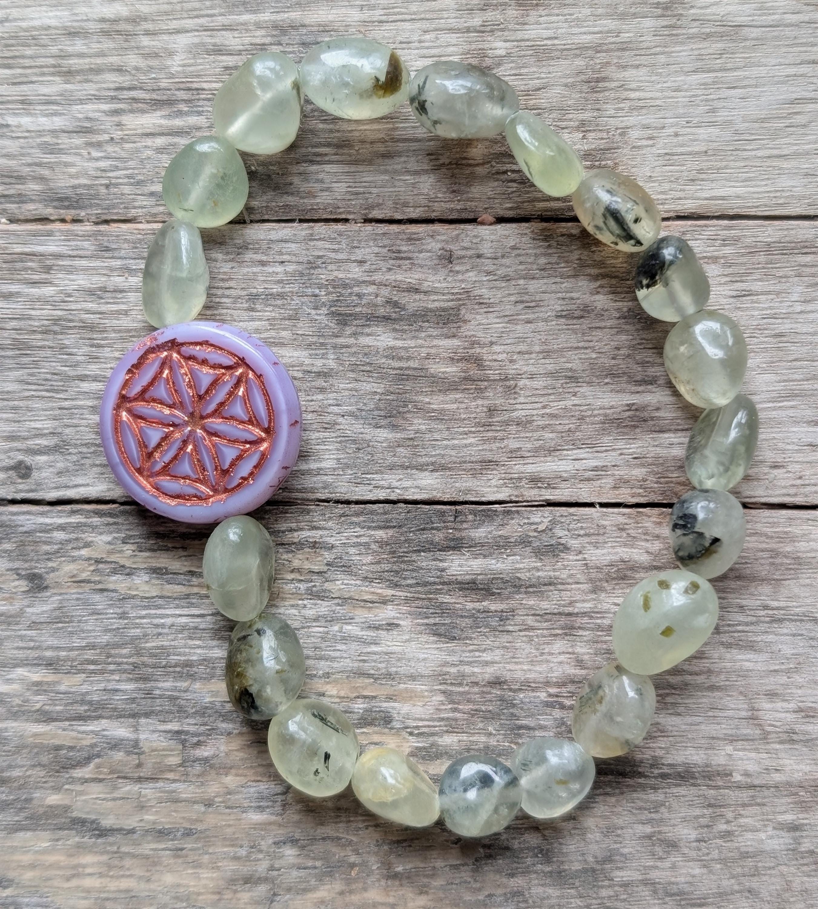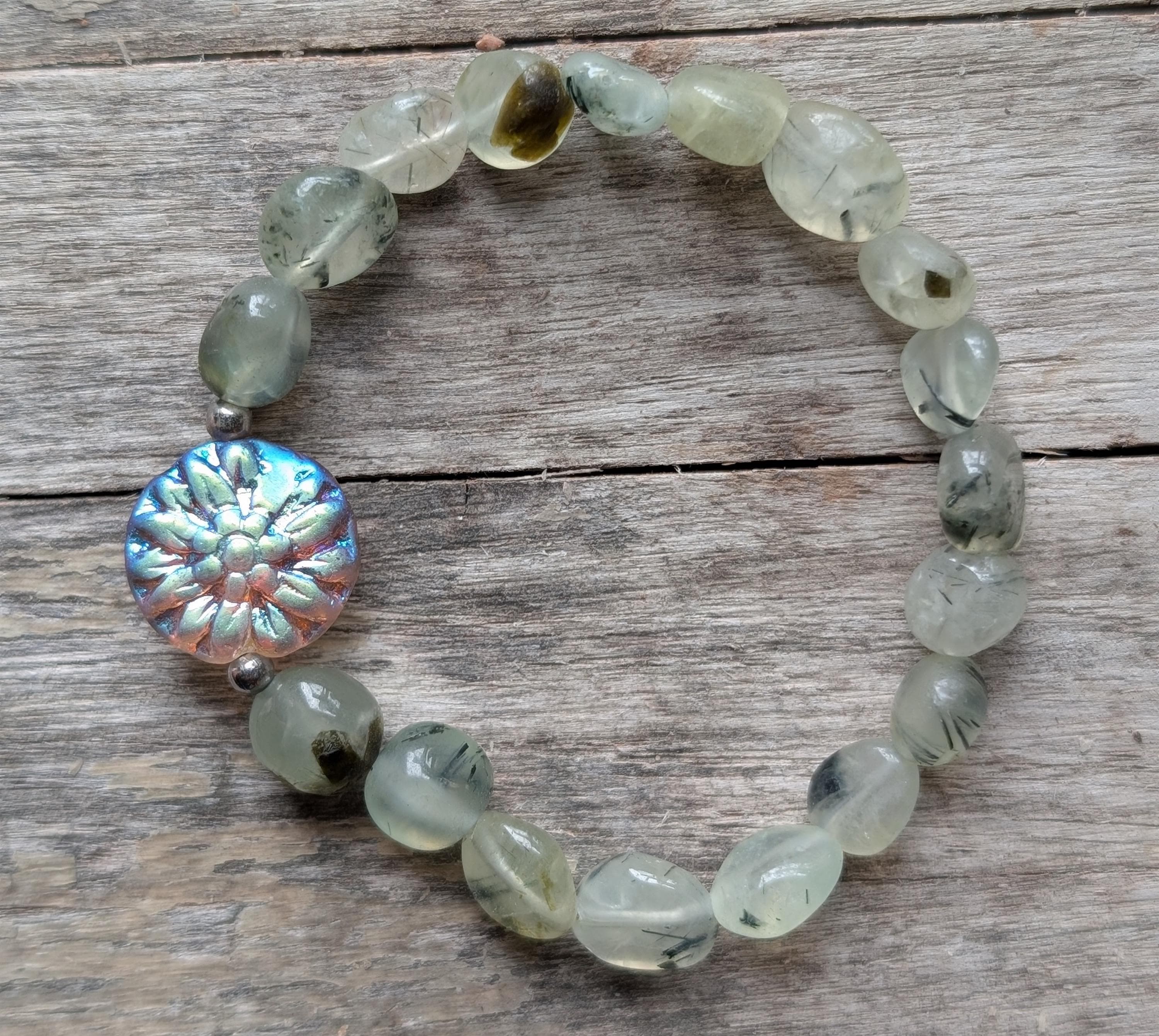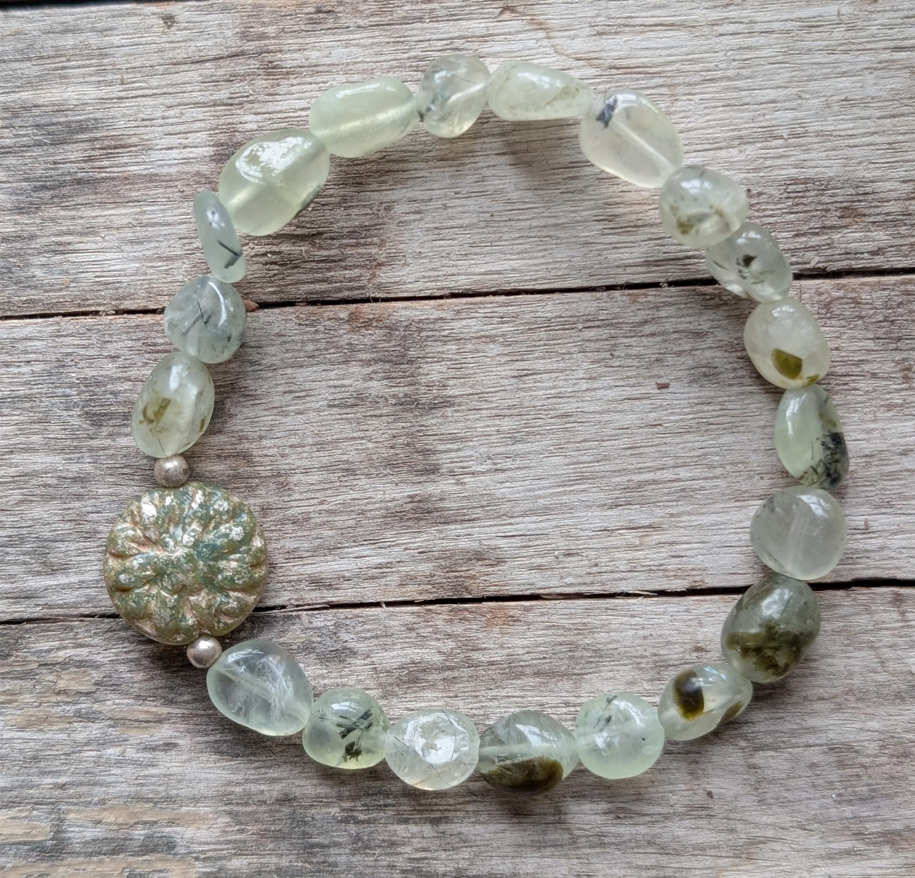 Handmade Prehnite Nugget Bracelet | Czech Glass Charms, Symbolic Jewelry