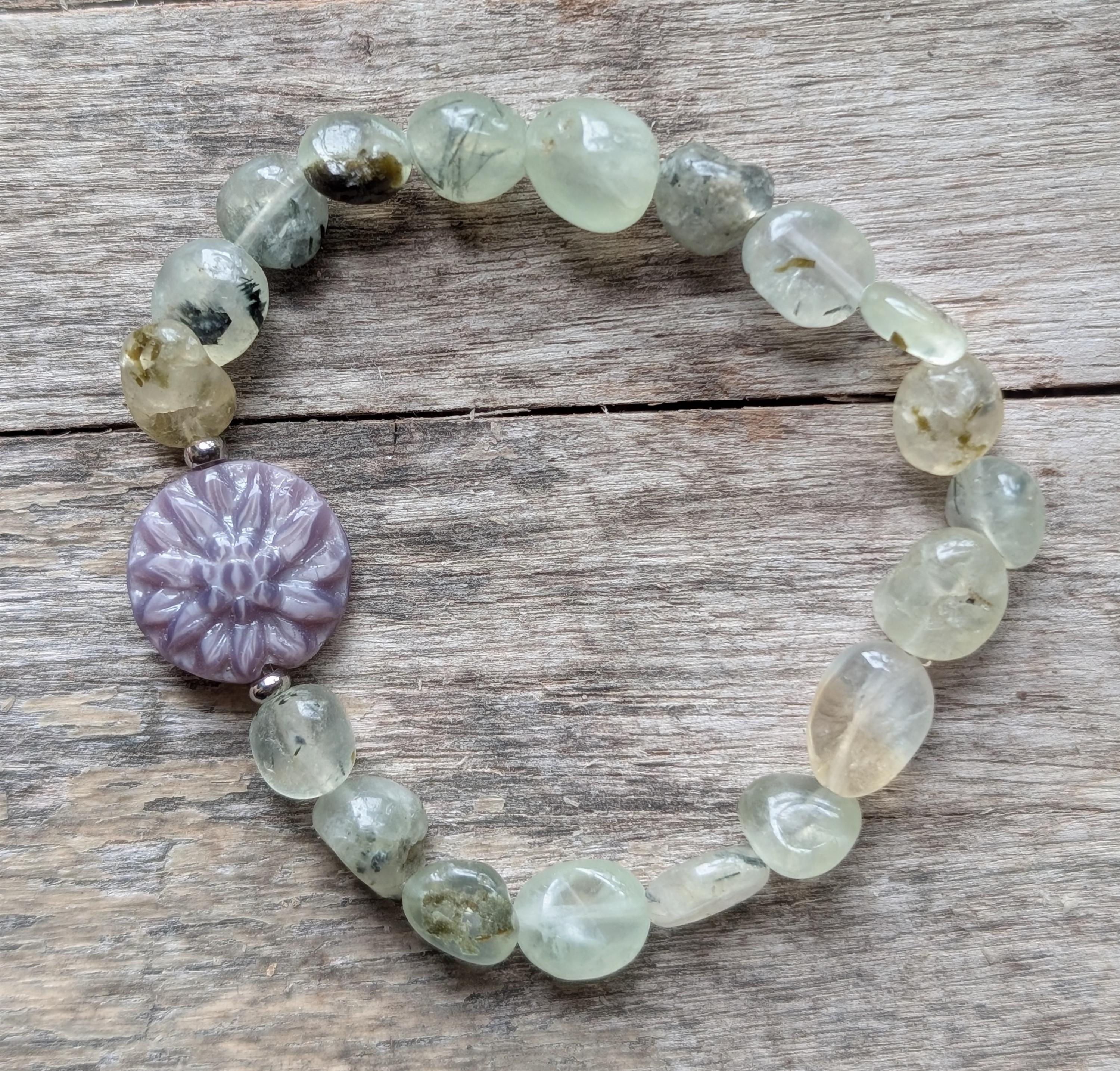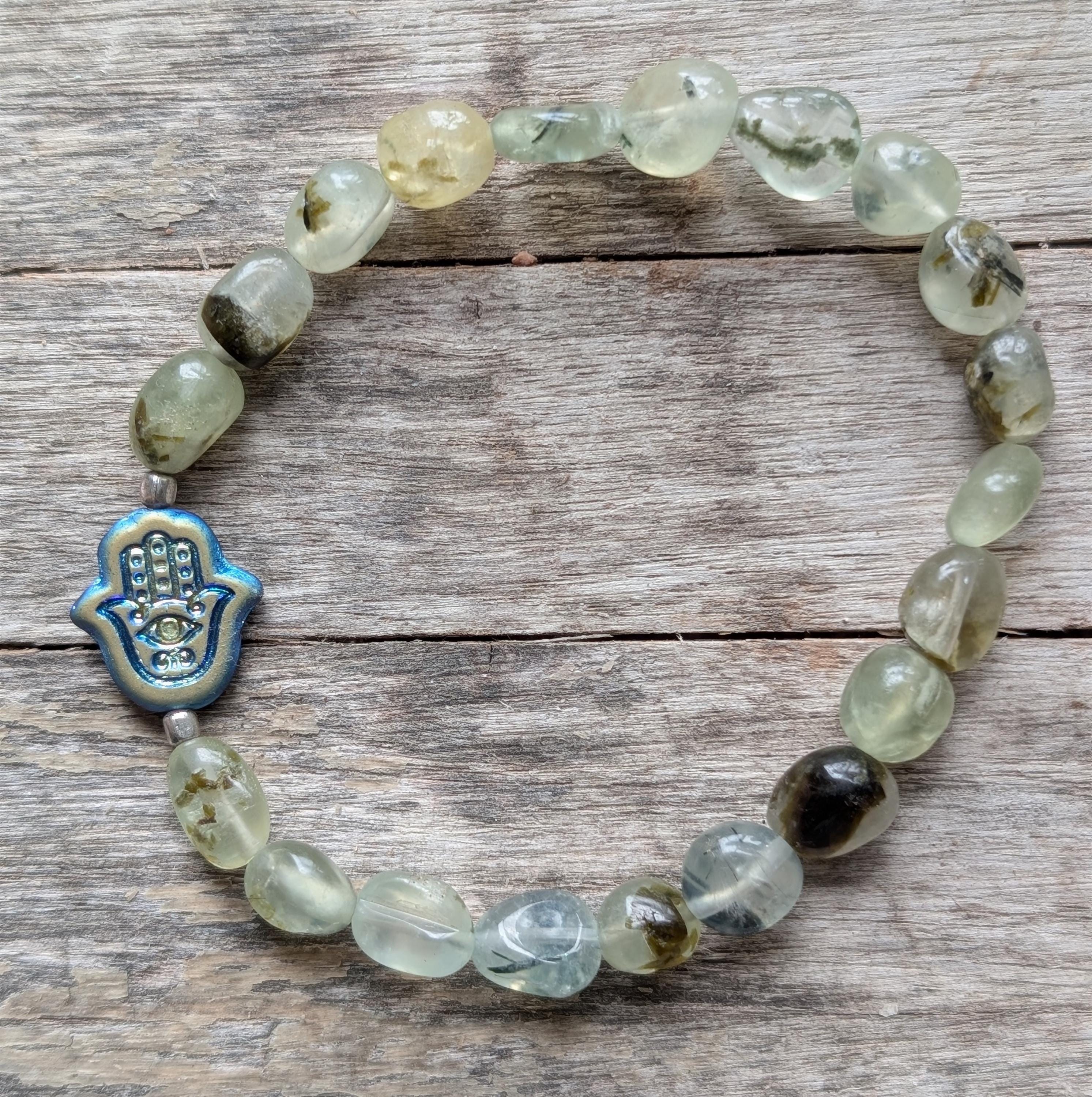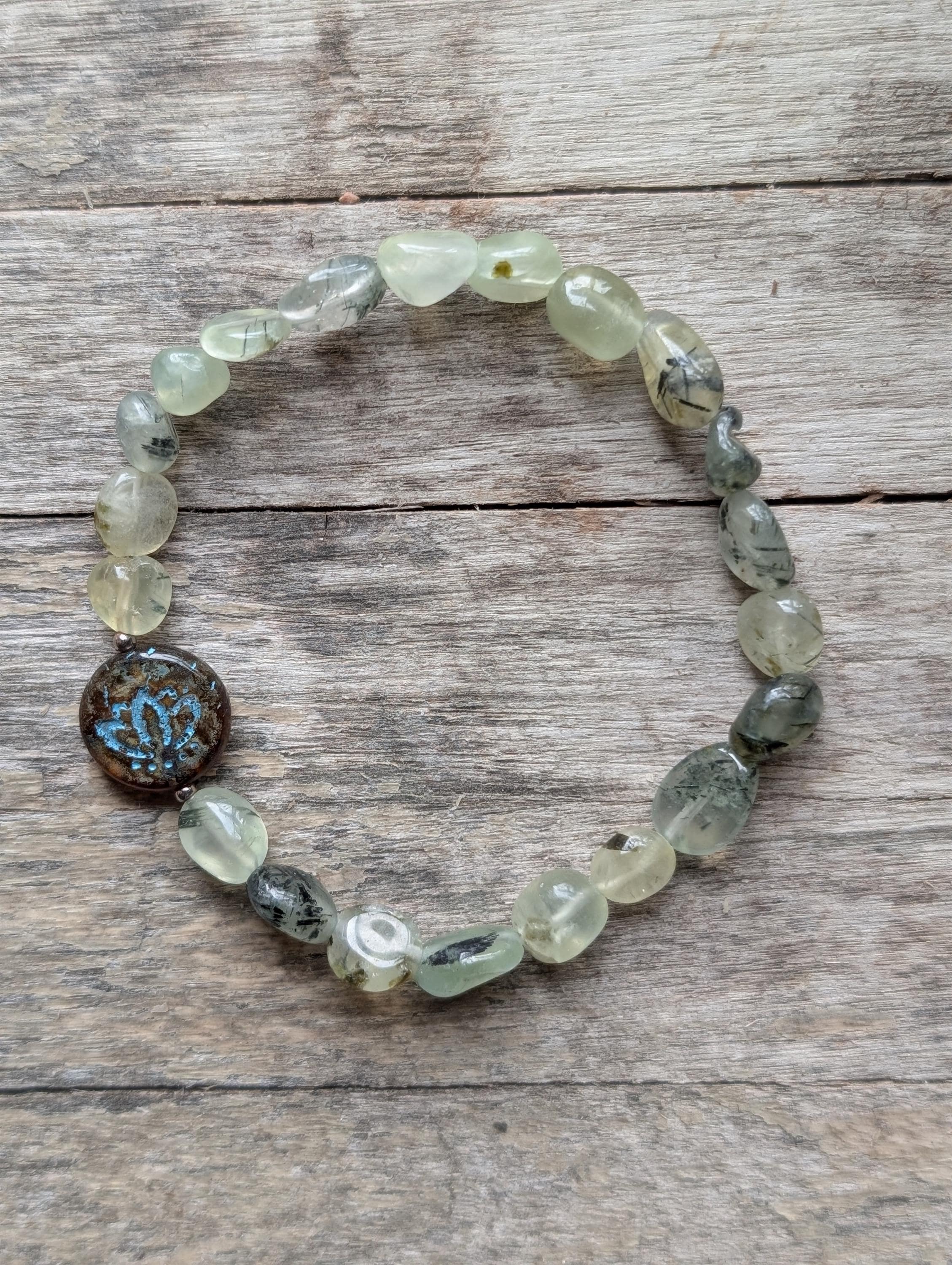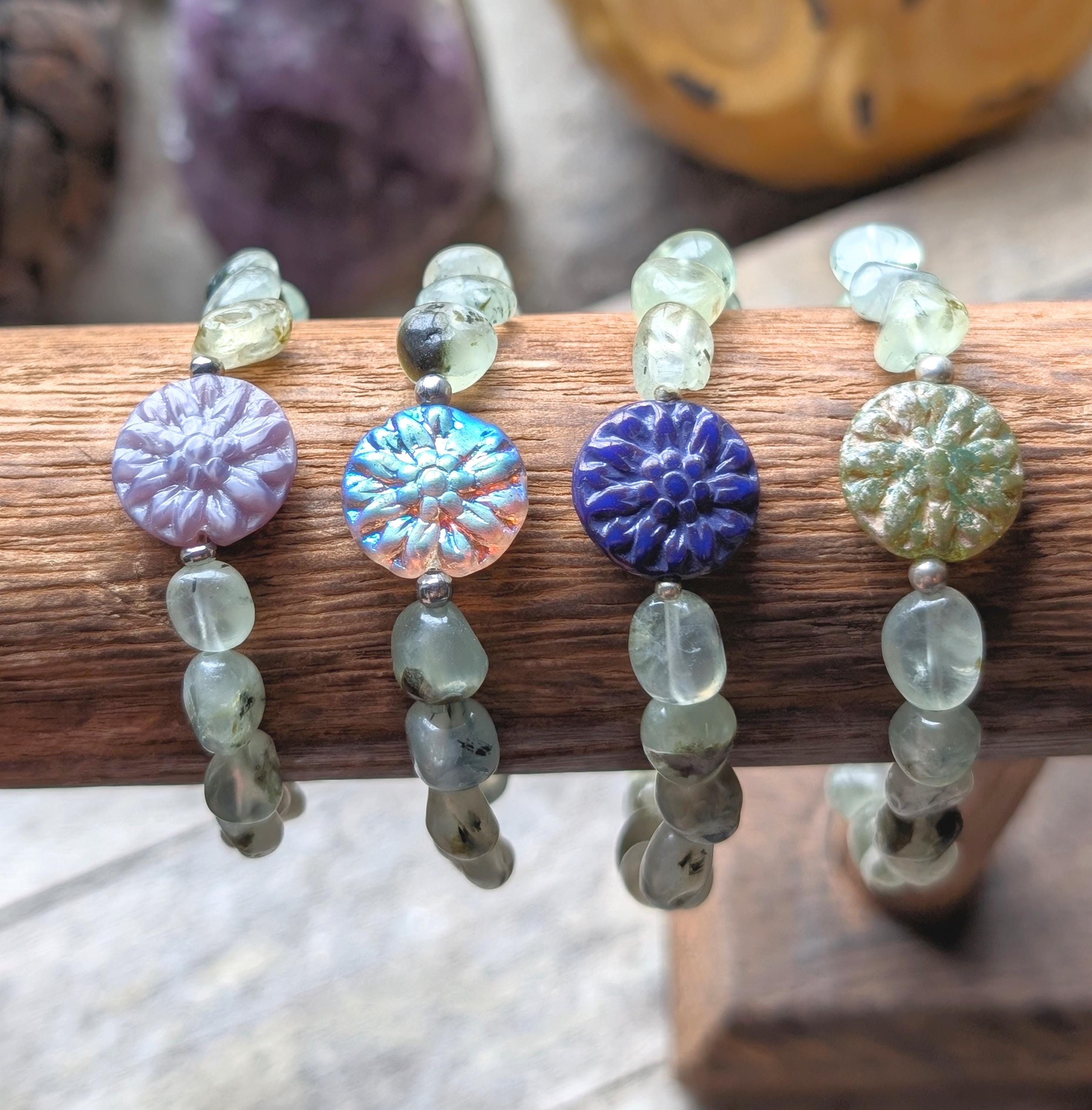Handmade Prehnite Nugget Bracelet | Czech Glass Charms, Symbolic Jewelry