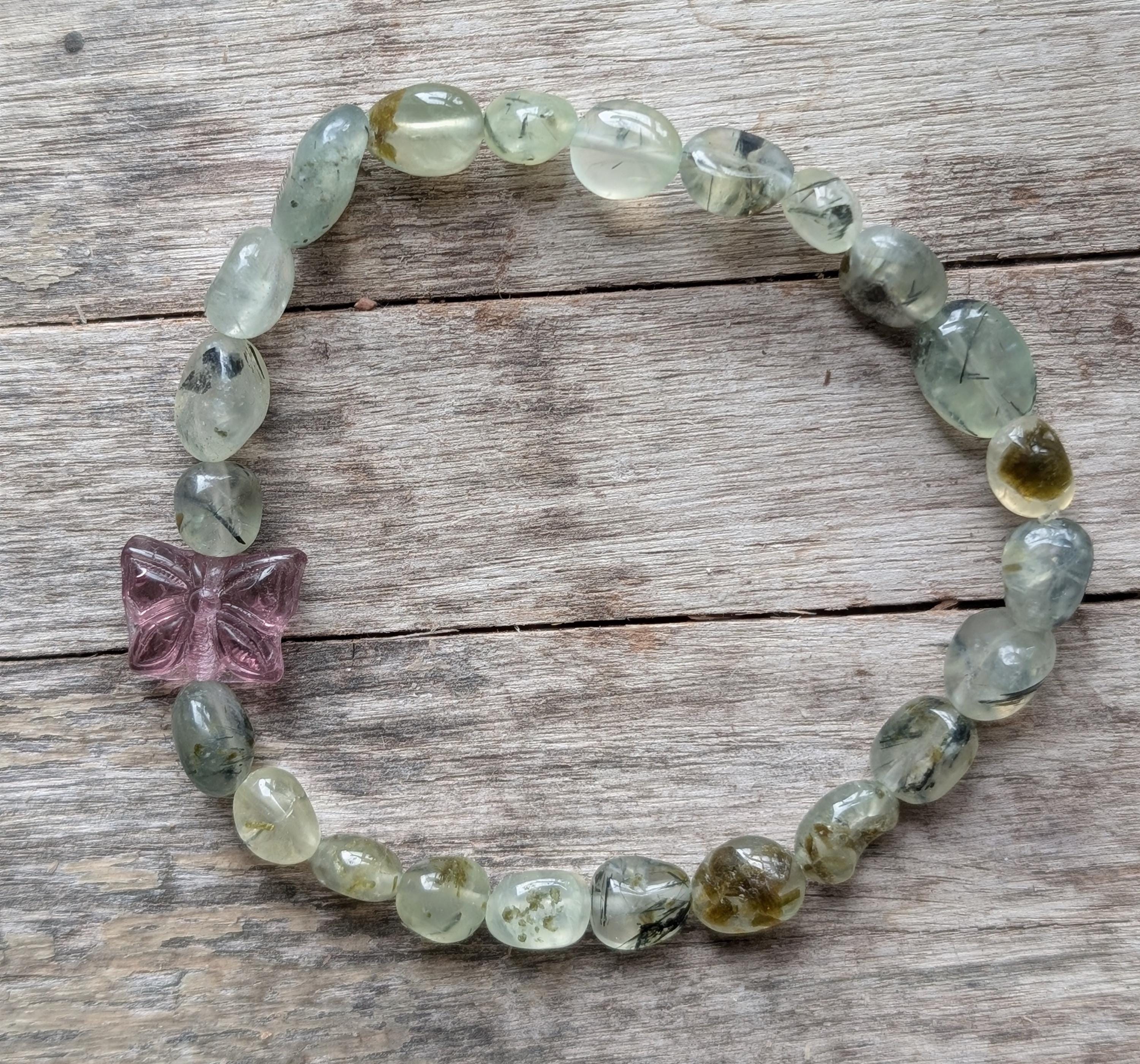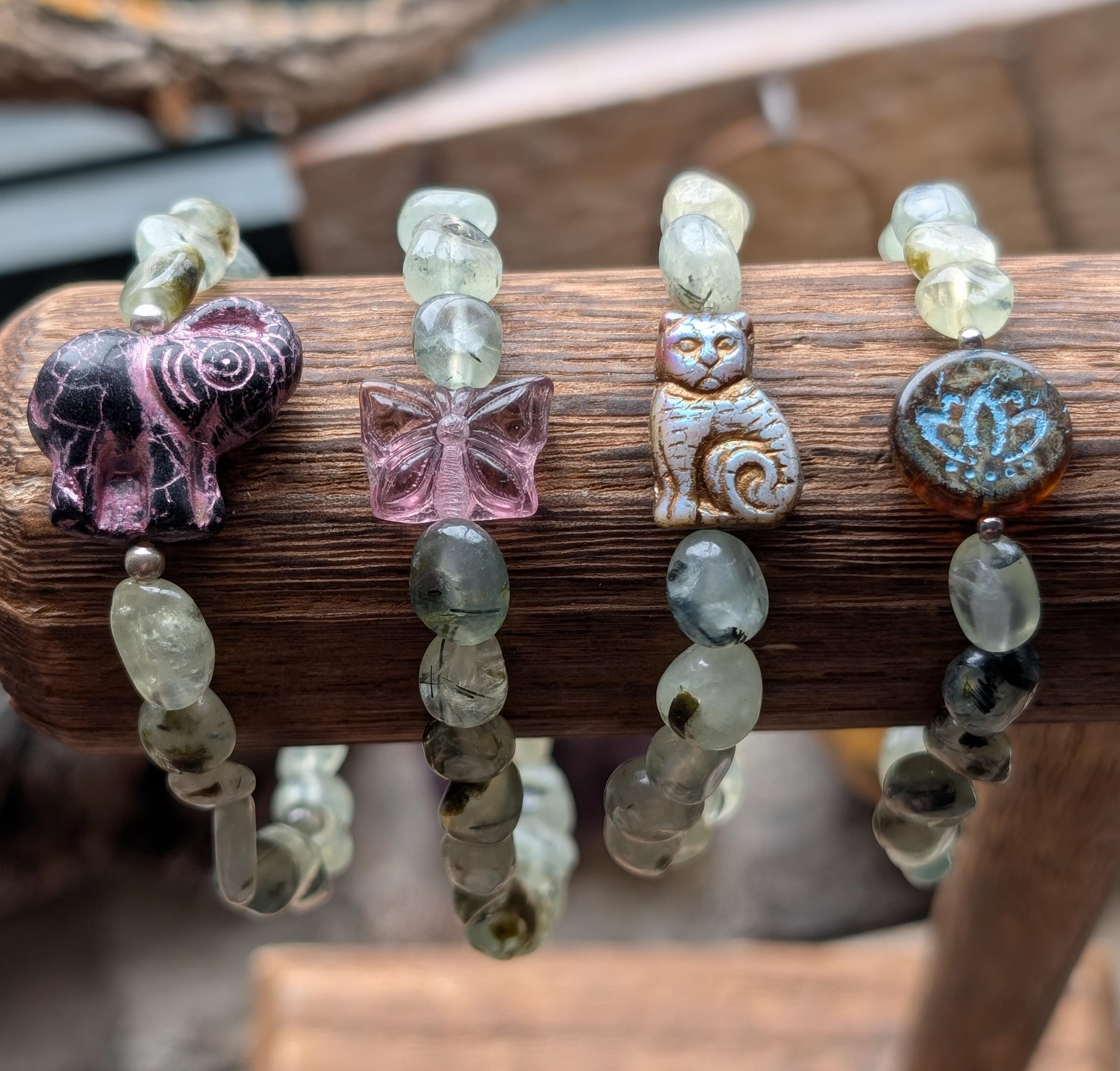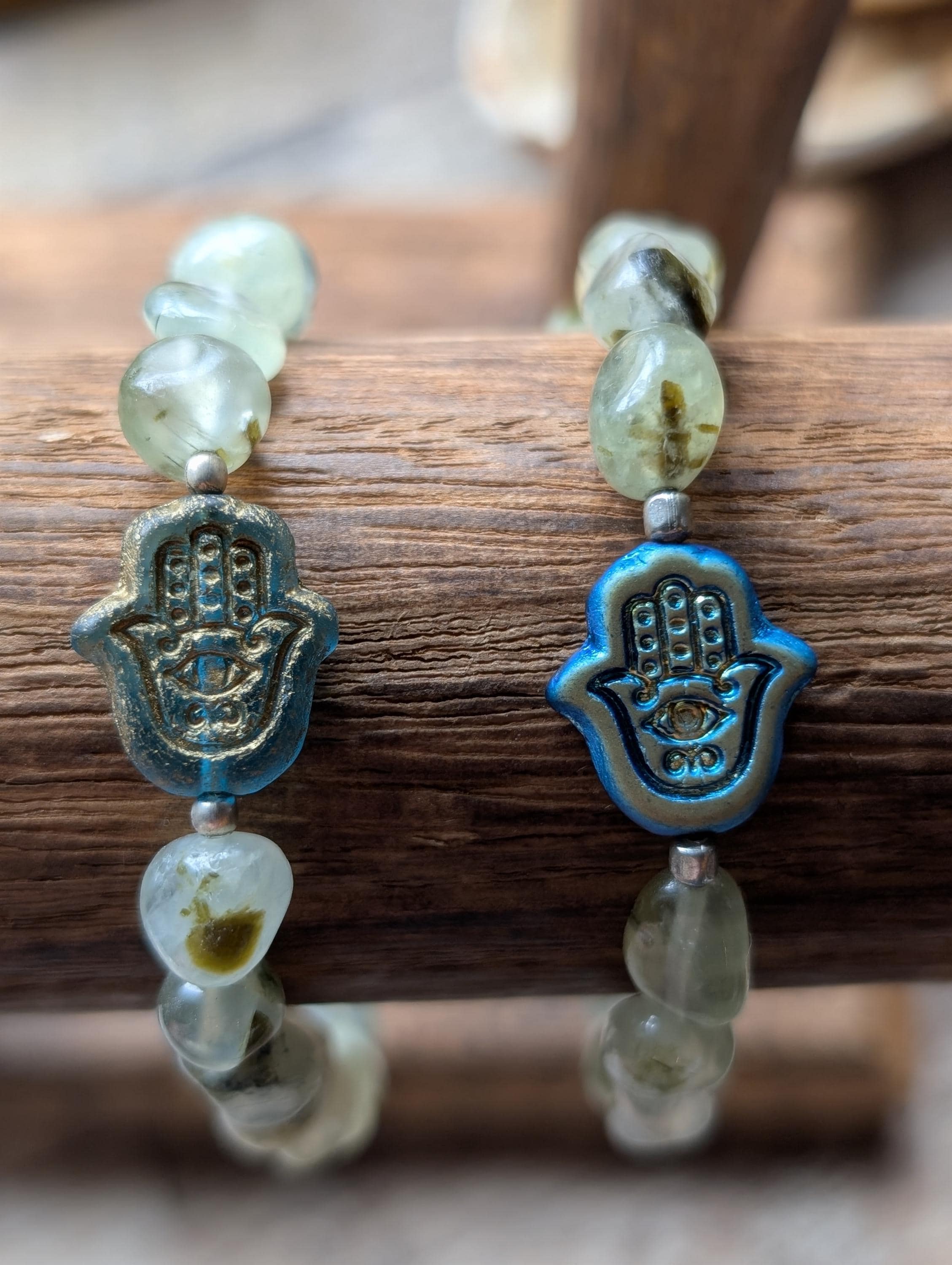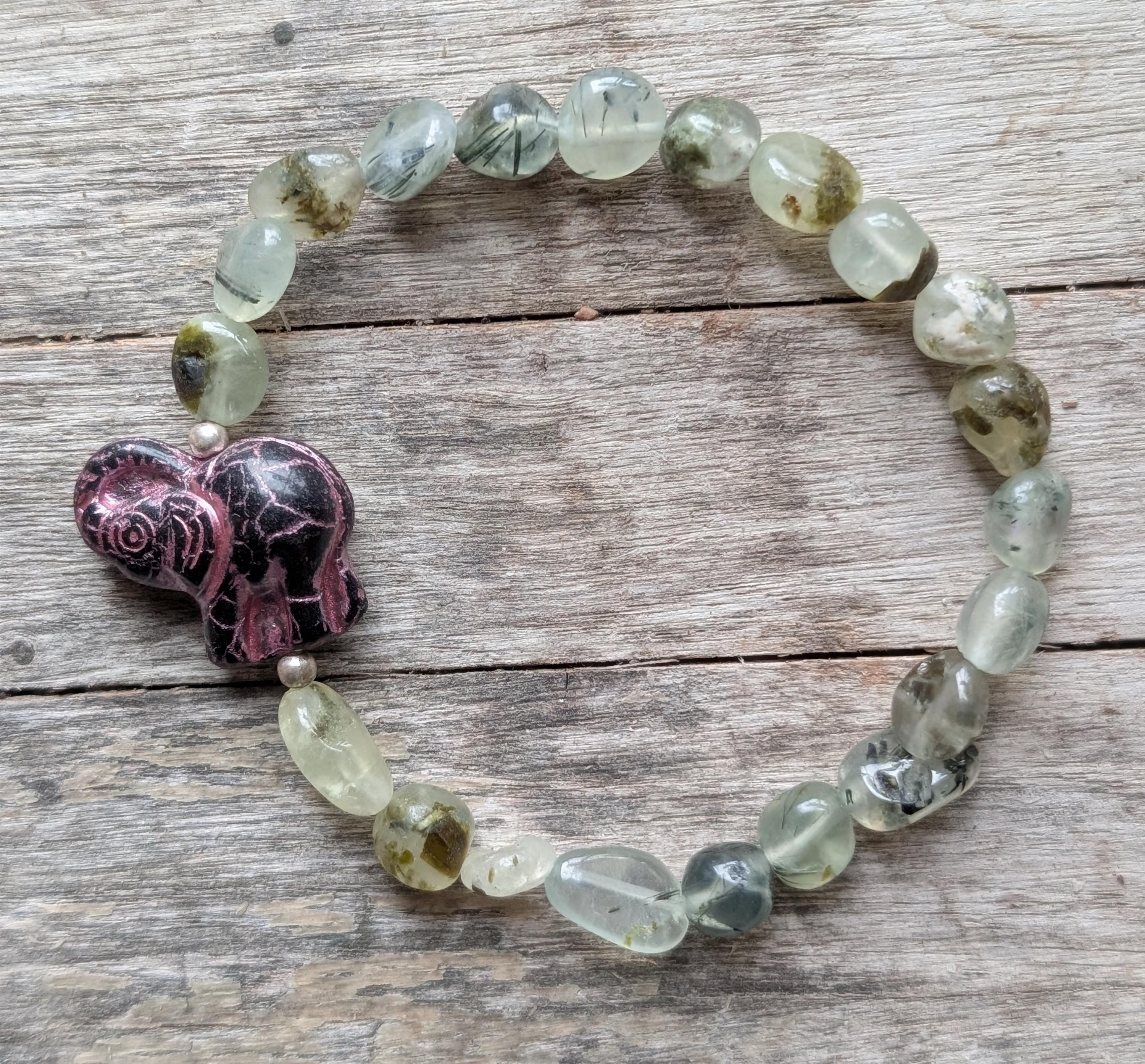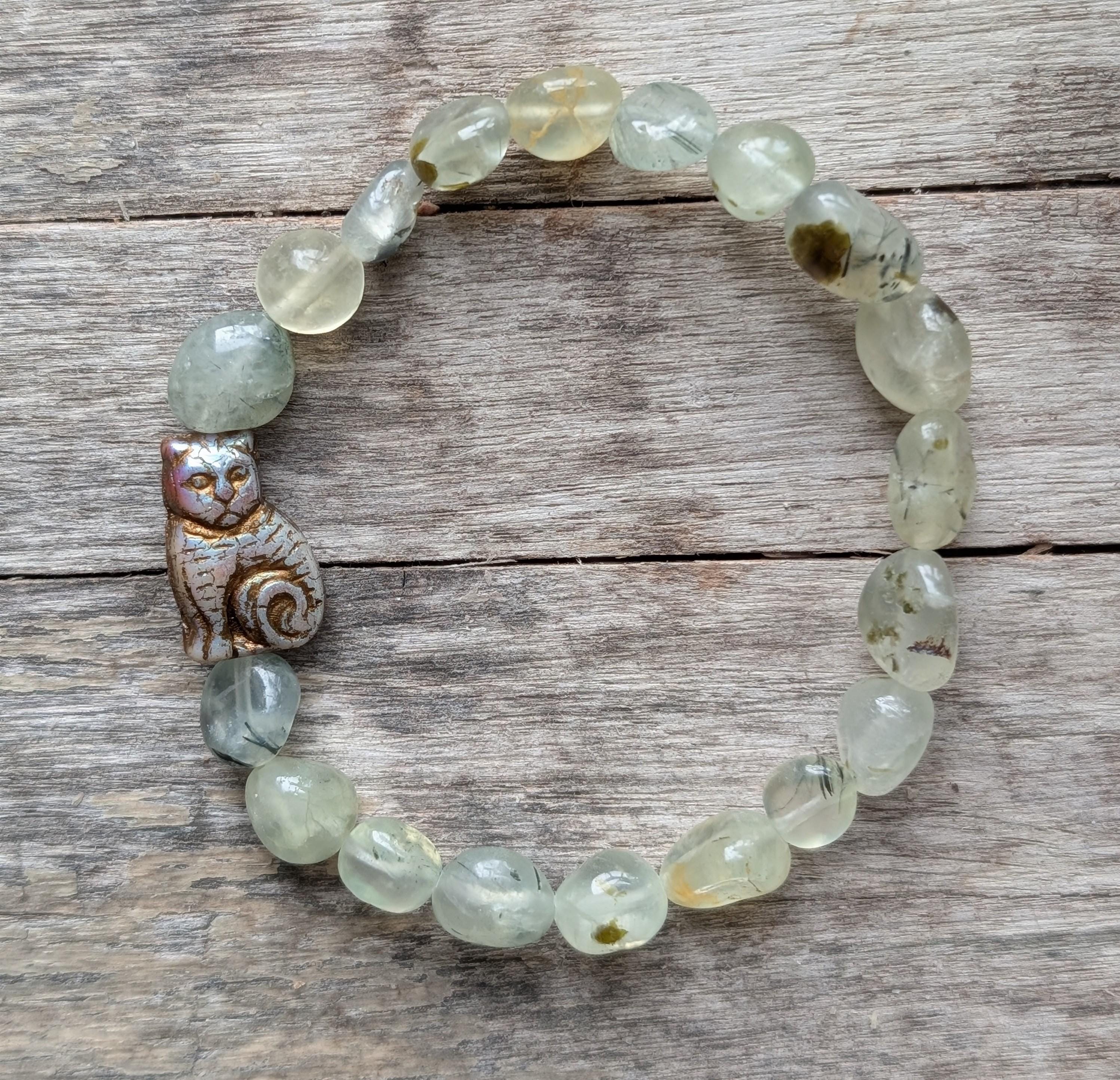 Handmade Prehnite Nugget Bracelet | Czech Glass Charms, Symbolic Jewelry