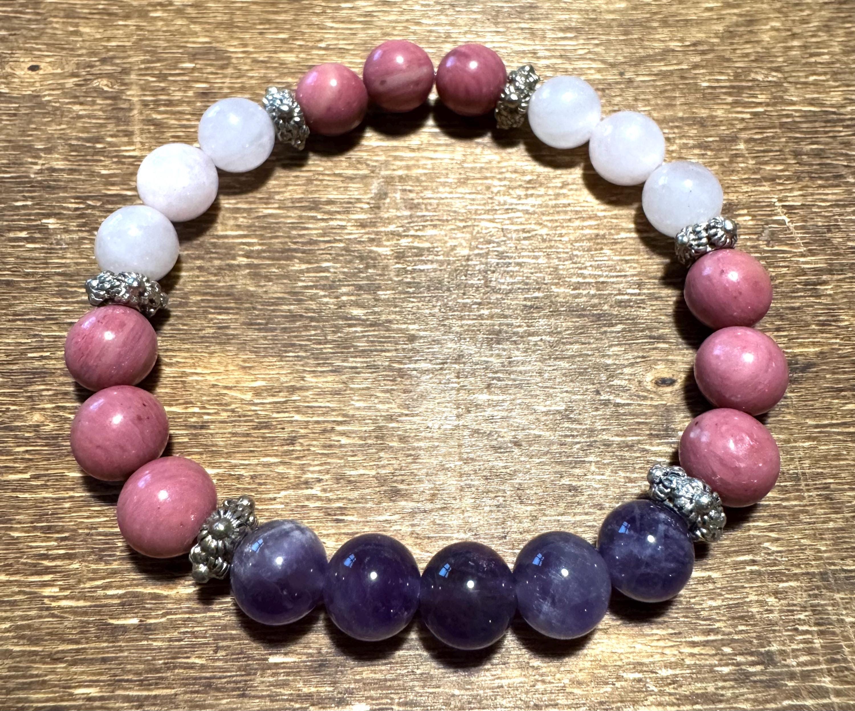 Self-love Intention Handmade Gemstone Bracelet – Amethyst, Rhodonite & Rose Quartz