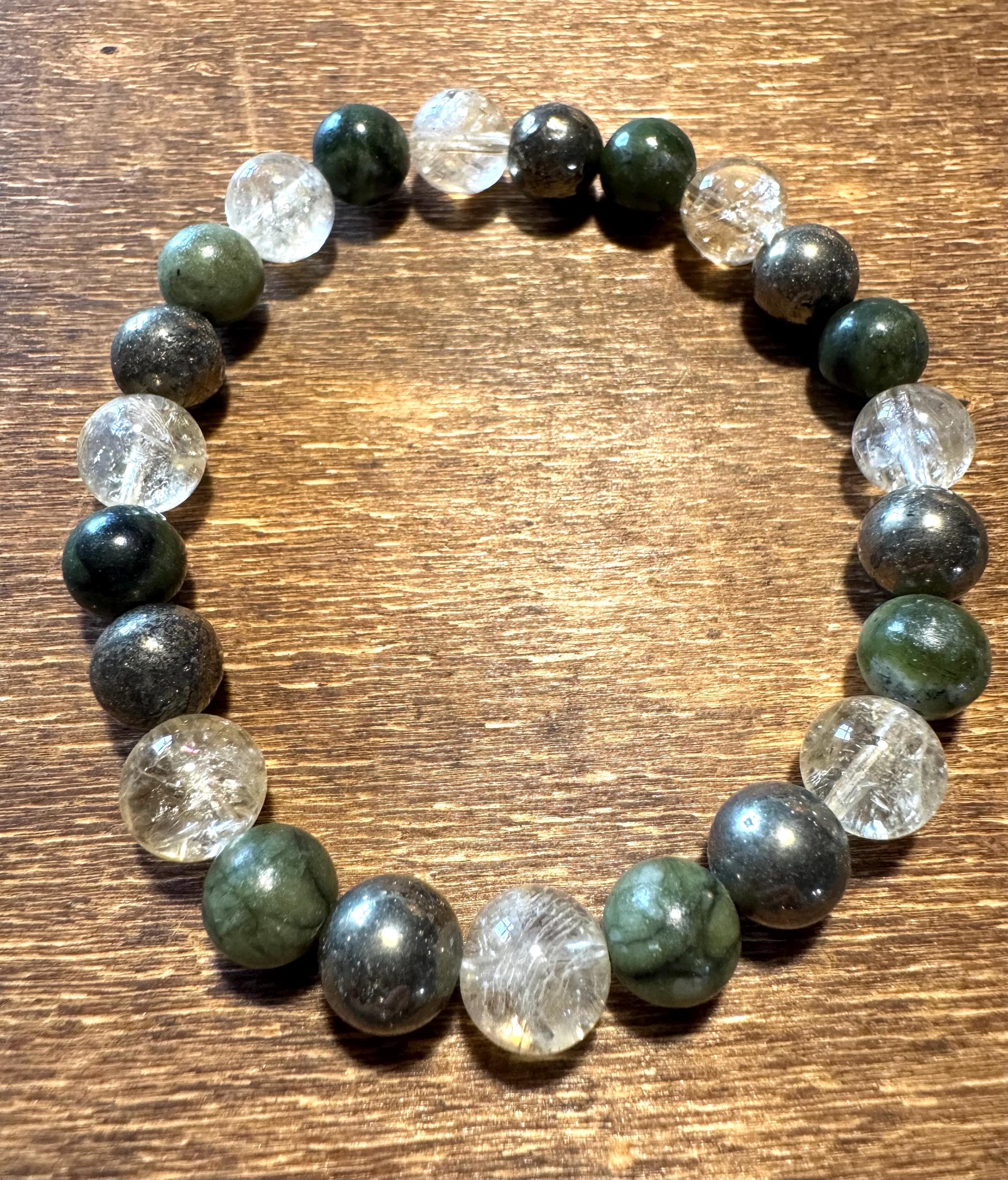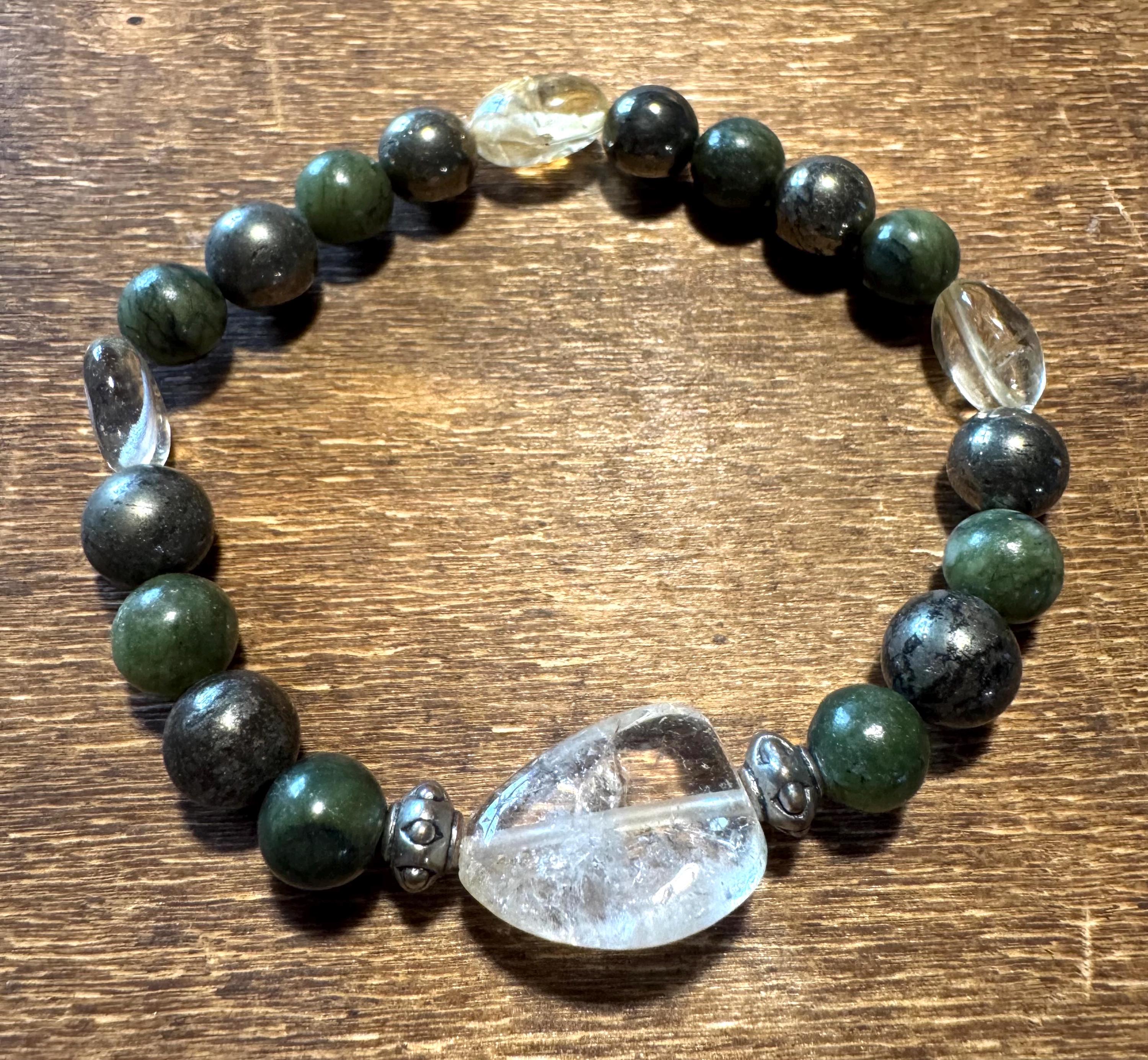 Attract Money, Wealth, Prosperity and Abundance Bracelet – Citrine, Jade & Pyrite Gemstones, handmade