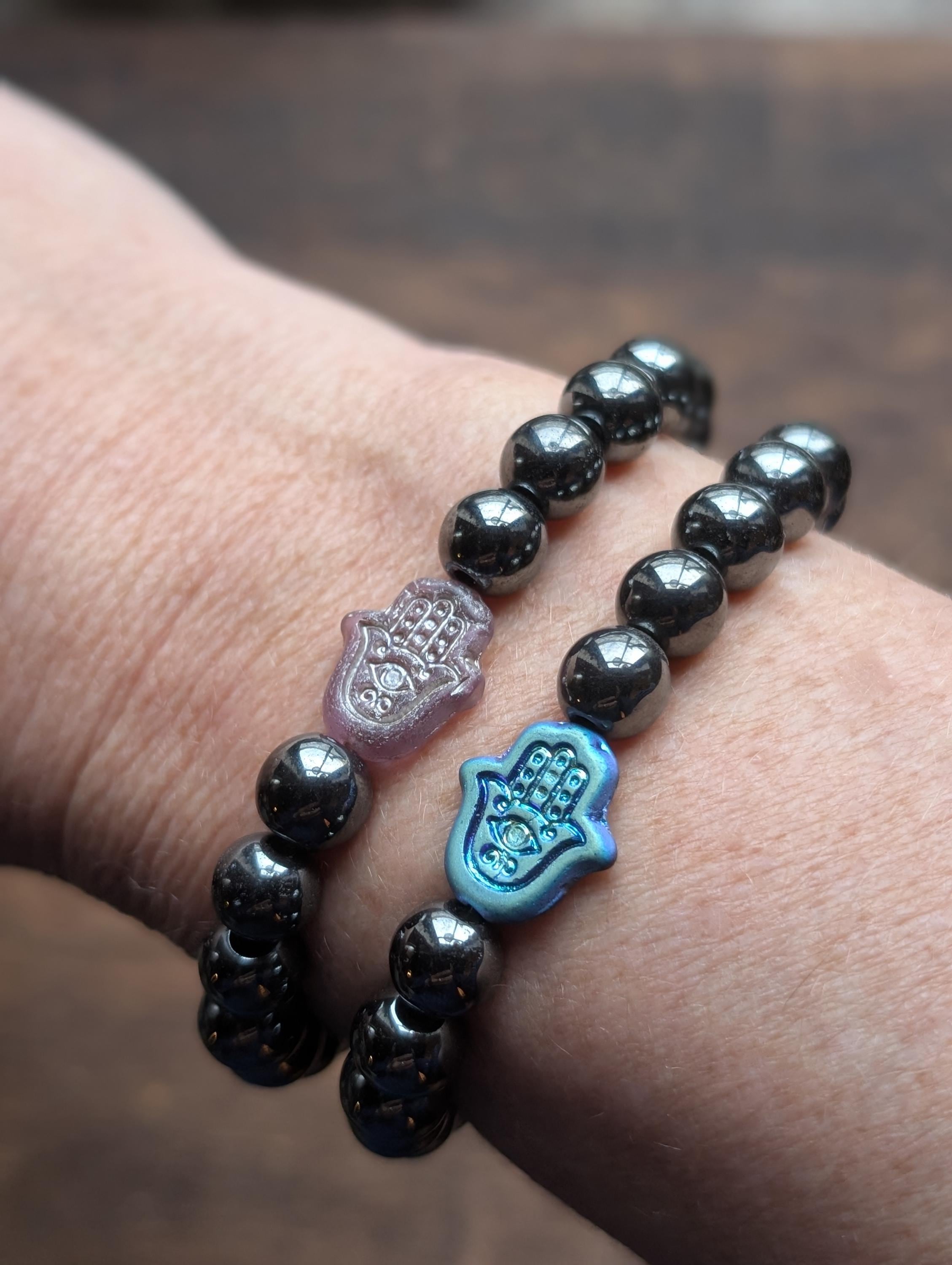 Handmade with love, these hematite bracelets combine grounding energy with the timeless beauty of Czechoslovakian pressed glass symbols. Each bracelet is crafted with intention, offering both meaningful symbolism and elegant design. Available in XS, M/L, and XL, they make a thoughtful gift—or a powerful addition to your own daily wear.