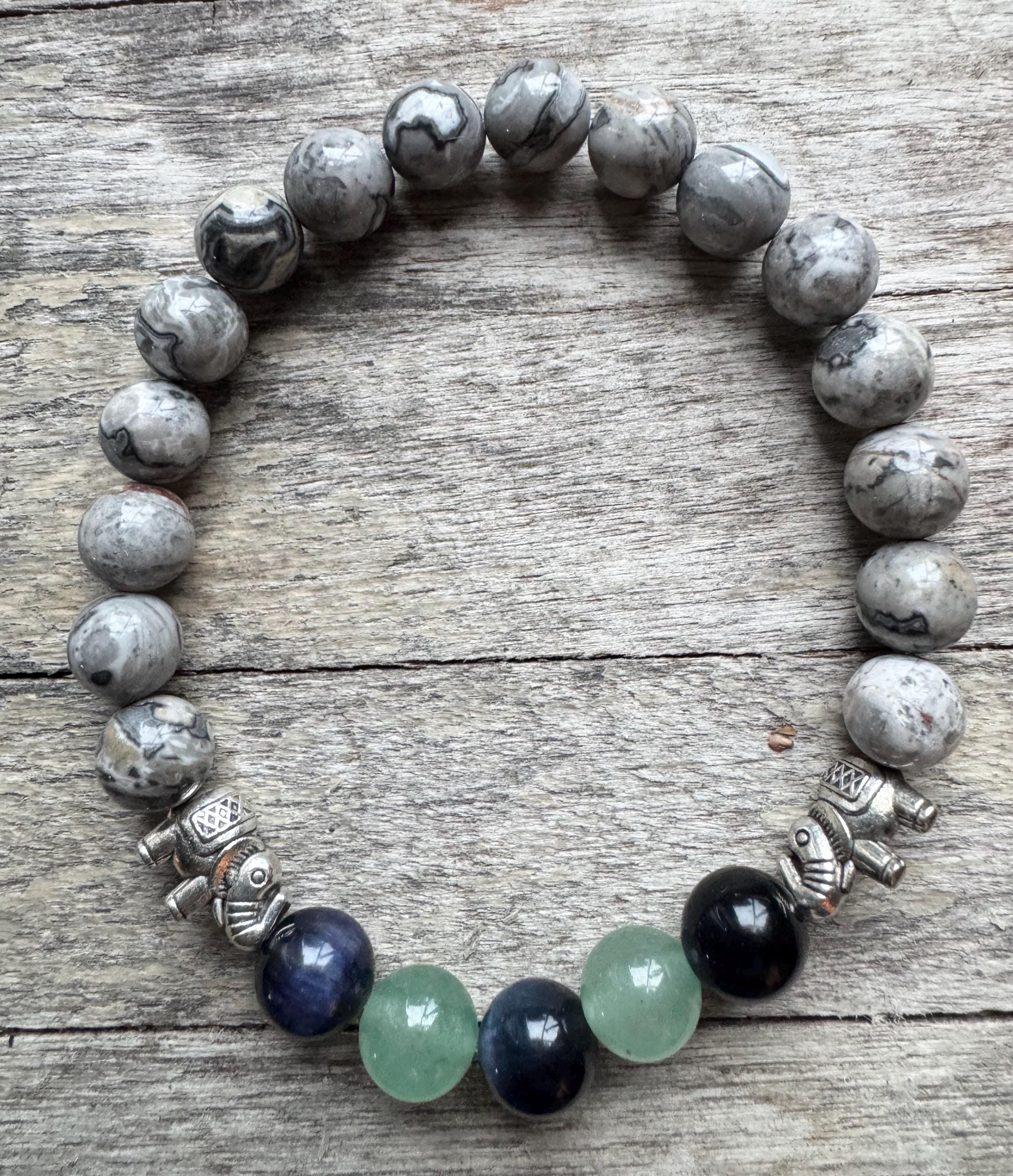 Find your focus and move through your day with calm, centered intention. This Handmade Clarity Intention Bracelet brings together a powerful trio of stones—Blue Tiger’s Eye, Gray Picasso Jasper, and Green Aventurine—each selected to support mental clarity, emotional stability, and clear decision-making.